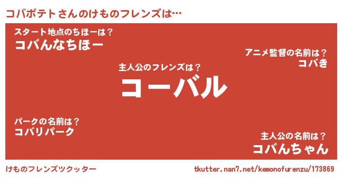 | 男性向けラノベタイトル風あだ名 | 『コバポテトという概念が存在しない退屈な世界 』 |