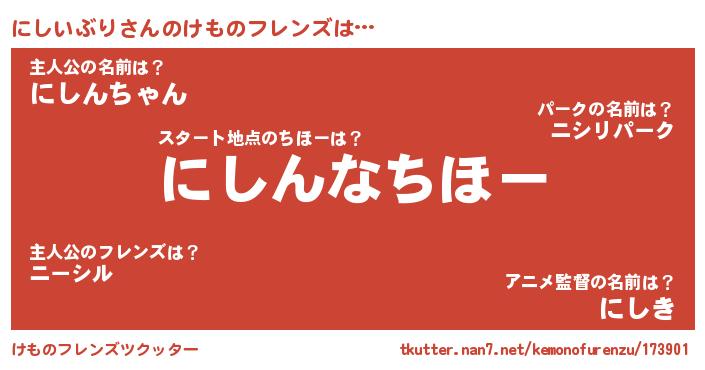 | 男性向けラノベタイトル風あだ名 | 『にしいぶりに滅ぼされるだけの簡単なお仕事です』 |
