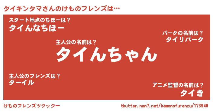 | ヒーロー風カッコイイあだ名 | 『スーパータイキンタマ』『黄金騎士タイ』 |