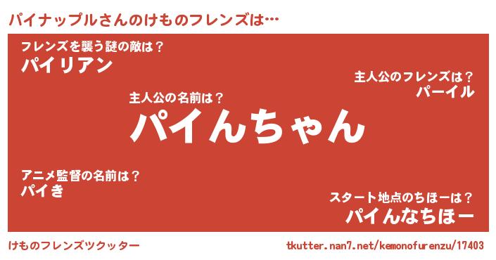 | 意味不明あだ名 | 『住所不定無職パイナップル(77歳)』 |
