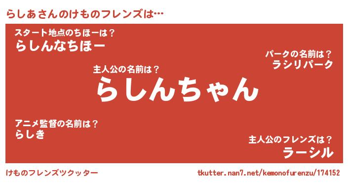 | 2回繰り返すあだ名 | 『らしらし』『んごんご』『ららしし』 |