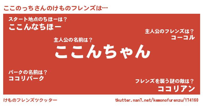 | 2回繰り返すあだ名 | 『ここここ』『ここここ』『ぶつぶつ』 |