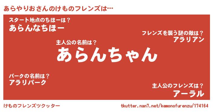 | 可愛いあだ名 | 『あらぷりん』『あんあん』 |