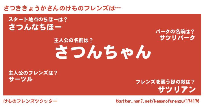 | ツイッター | さつききょうかさんのツイッターID『dendenmushi_star』 |