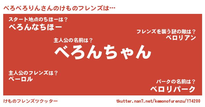 | 2回繰り返すあだ名 | 『べろべろ』『ちゃりんちゃりん』 |