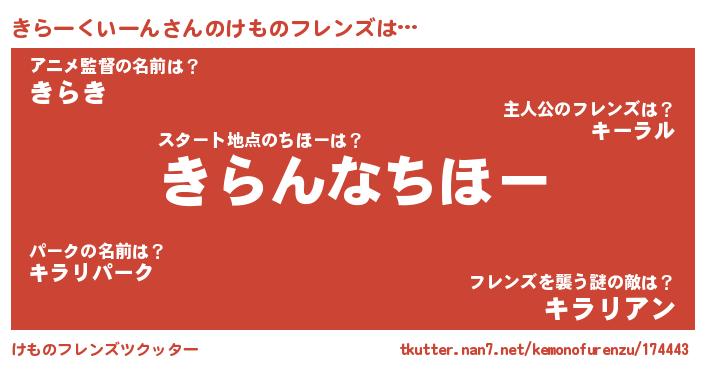 | 自動車の名前っぽいあだ名 | 『ランキラギーニ』『キクア』『キンR』 |