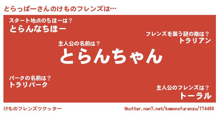 | 胡散臭い通販商品みたいなあだ名 | 『必ず成功する霊験あらたかなお札…その名も「とらっぱー」』 |
