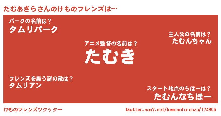 | 恥ずかしいあだ名 | 『タムリンリン』『タムアキラデラックス』 |
