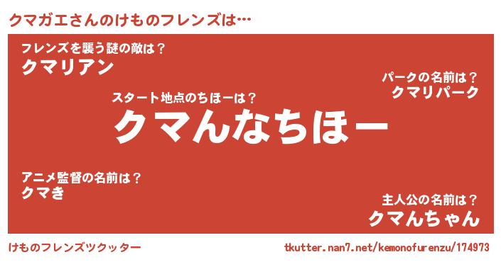 | ヒーロー風カッコイイあだ名 | 『ウルトラクマガエマン』『仮面クマダー』 |