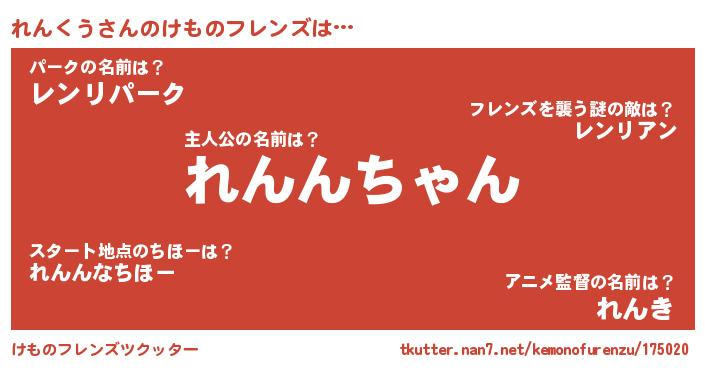| 意味不明あだ名 | 『ペロリンれんくう』『自称れんくう』 |
