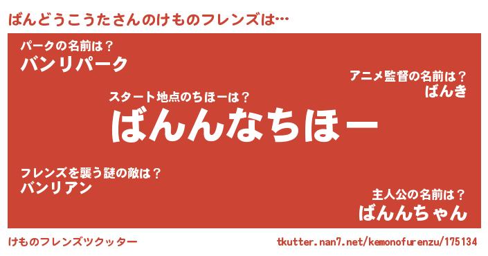 | 2回繰り返すあだ名 | 『ちりちり』『わんわん』『ばばんん』 |