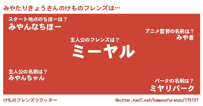 | ポケモン風あだ名 | 『ミーヤイ』『ゼニミヤ』 |