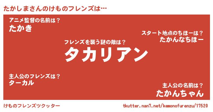 | ポケモン風あだ名 | 『タックウザ』『ヒタカシマ』 |