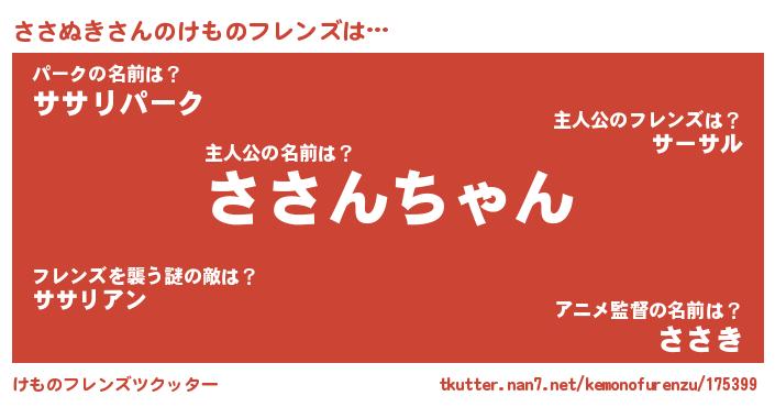 | ヒーロー風カッコイイあだ名 | 『スーパーササヌキ』『黄金騎士ササ』 |