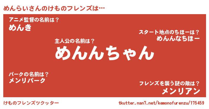 | ファンタジー風あだ名 | 『メンフェル』『カークメンラー』 |