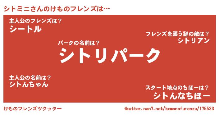 | 意味不明あだ名 | 『自称シトミニ』『なめこ科シトミニ属』 |