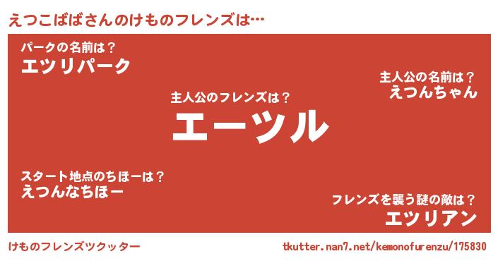 | 男性向けラノベタイトル風あだ名 | 『えつこばばという概念が存在しない退屈な世界 』 |