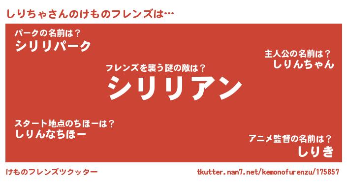 | 意味不明あだ名 | 『しいたけ科しりちゃ属』『自称しりちゃ』 |