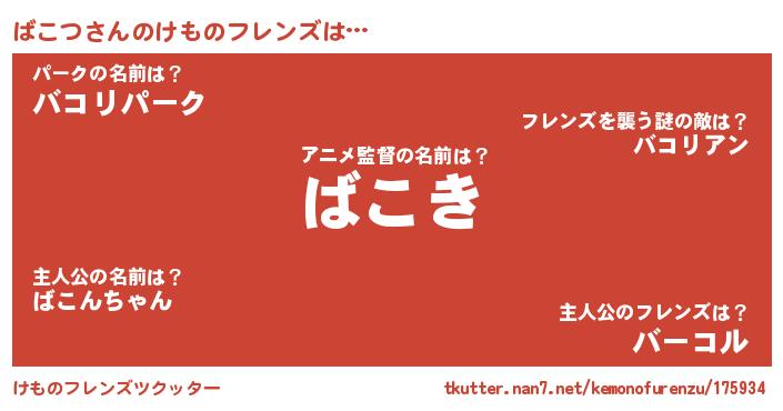 | 意味不明あだ名 | 『もやし科ばこつ属』『自称ばこつ』 |