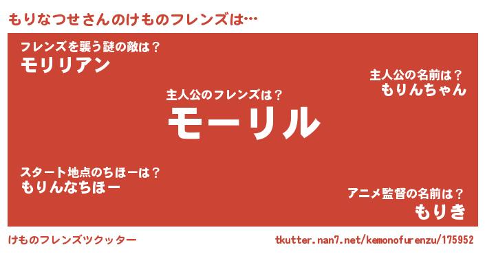 | 男性向けラノベタイトル風あだ名 | 『もりなつせという概念が存在しない退屈な世界 』 |