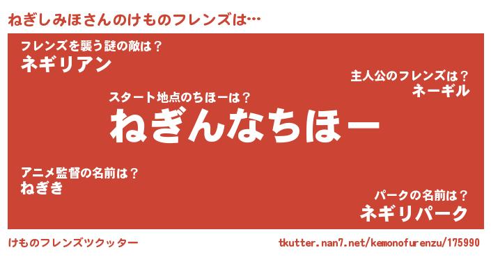 | ポケモン風あだ名 | 『ネギゴンZ』『ネギシダネ』 |
