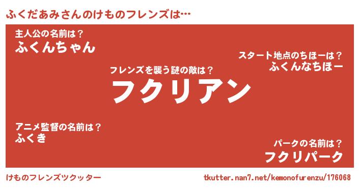| ヒーロー風カッコイイあだ名 | 『慈愛の使者ふくだあみ』『黄金騎士フク』 |