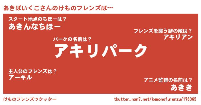 | 意味不明あだ名 | 『自称あきばいくこ』 |