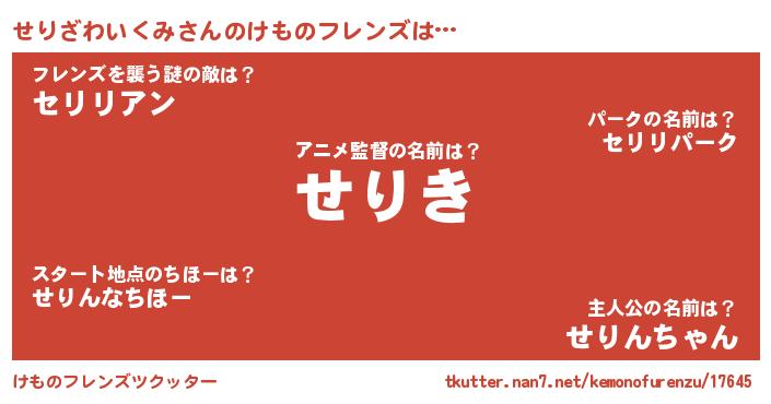 | ポケモン風あだ名 | 『セリゴンZ』『ヒセリザワイクミ』 |
