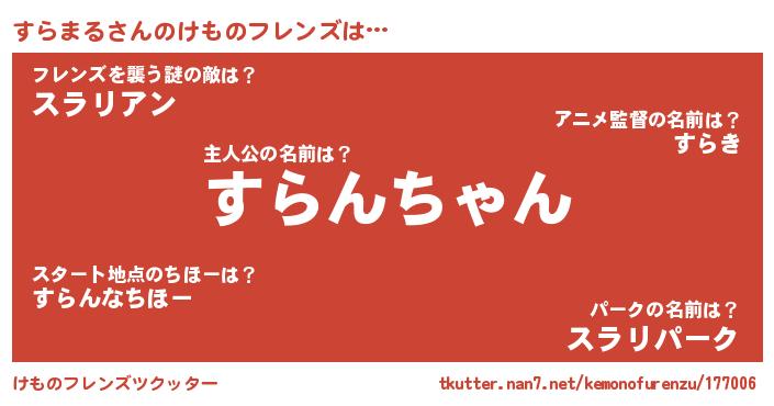 | ヘコむあだ名 | 『すらっふぃ~』『すらを』 |