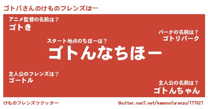 | 欧米人風あだ名 | 『ゴトバクリステル』『トリンドルゴトバ』 |
