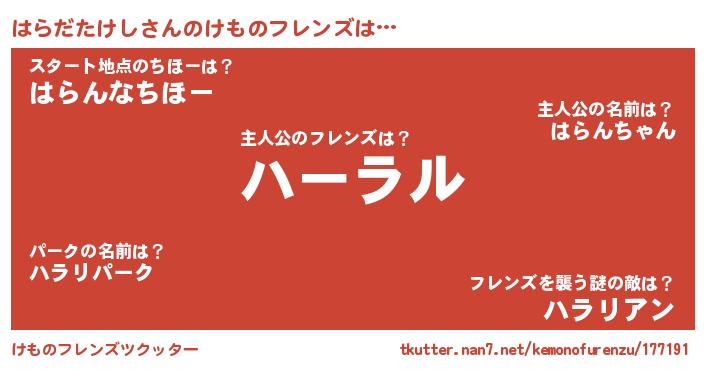 | 意味不明あだ名 | 『永久保存はらだたけし』 |