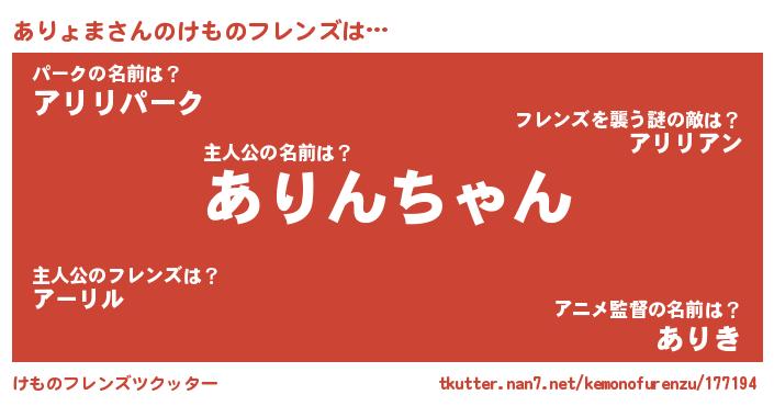| ポケモン風あだ名 | 『アリチュウ』『アリセウス』 |