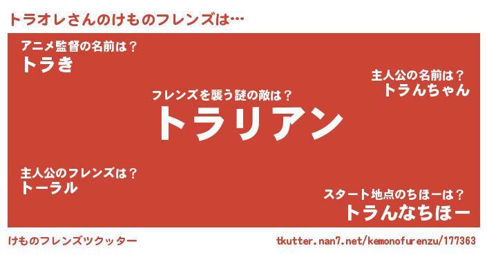 | ヒーロー風カッコイイあだ名 | 『慈愛の使者トラオレ』『魔戒騎士トラ』 |