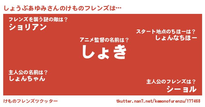 | ヘコむあだ名 | 『しょを』『しょうぶあゆみ(遠い目)』 |