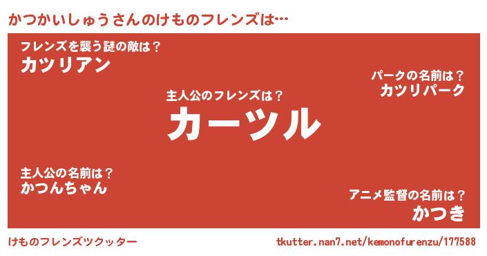 | ヒーロー風カッコイイあだ名 | 『ネオカツカイシュウ』『天弓騎士カツ』 |