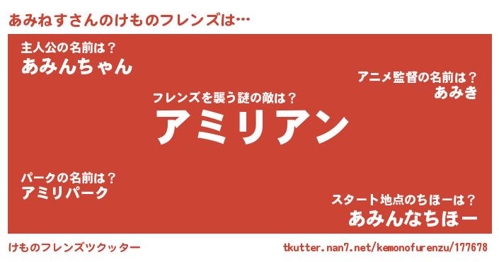 | ヒーロー風カッコイイあだ名 | 『慈愛の使者あみねす』『魔戒騎士アミ』 |