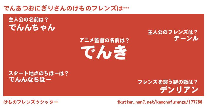 | ヘコむあだ名 | 『でんお』『でんふぇ~』『酢こんぶ』 |