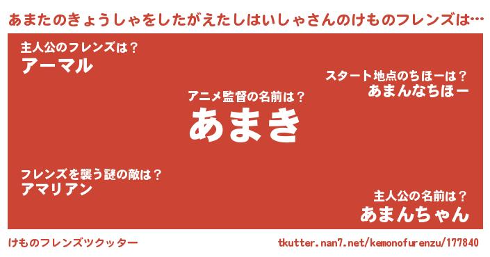 | 萌えアニメ | 主人公(あまたのきょうしゃをしたがえたしはいしゃ)のあだ名『 あまてゅん』 |