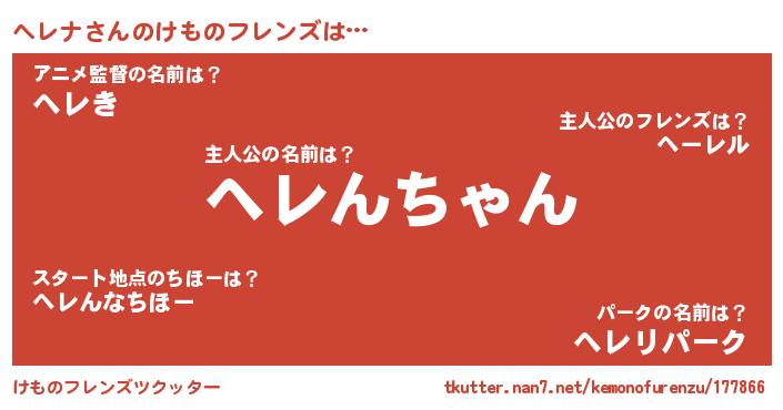 | ヒーロー風カッコイイあだ名 | 『仮面ヘレダー』『スーパーヘレナ』 |