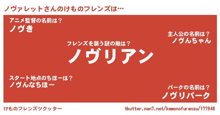| 男性向けラノベタイトル風あだ名 | 『おまえをオタクにしてやるから、俺をノヴァレットにしてくれ! 』 |