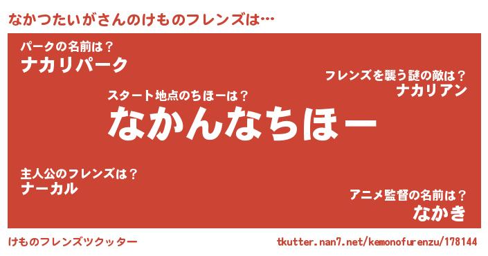| 意味不明あだ名 | 『なかつたいがフォーエバー』 |