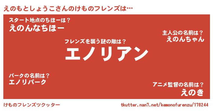 | 男性向けラノベタイトル風あだ名 | 『おまえをオタクにしてやるから、俺をえのもとしょうこにしてくれ! 』 |