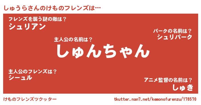 | 2回繰り返すあだ名 | 『ちゅーちゅー』『しゅしゅ』 |