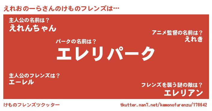 | 意味不明あだ名 | 『住所不定無職えれおのーら(6歳)』 |