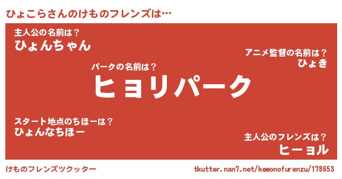 | 意味不明あだ名 | 『自称ひょこら』『ペロリンひょこら』 |
