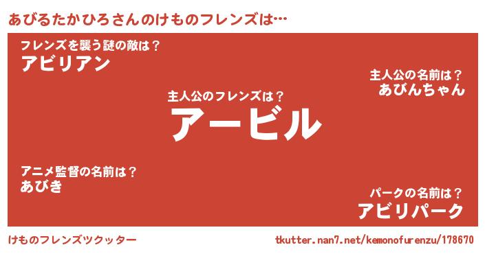 | 意味不明あだ名 | 『永久保存あびるたかひろ』 |