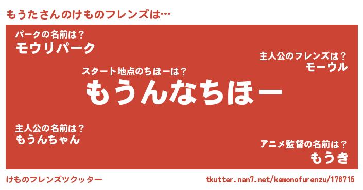 | 意味不明あだ名 | 『住所不定無職もうた(12歳)』『自称もうた』 |