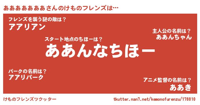 | 2回繰り返すあだ名 | 『ああああ』『ぼさぼさ』『ああああ』 |