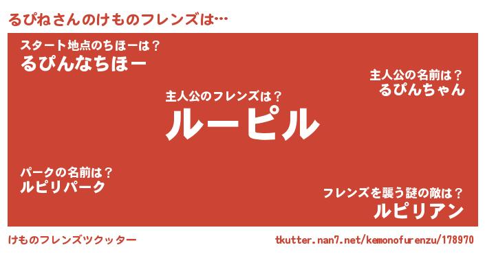 | ポケモン風あだ名 | 『ゼニルピ』『ルピゴンZ』『ルーピイ』 |