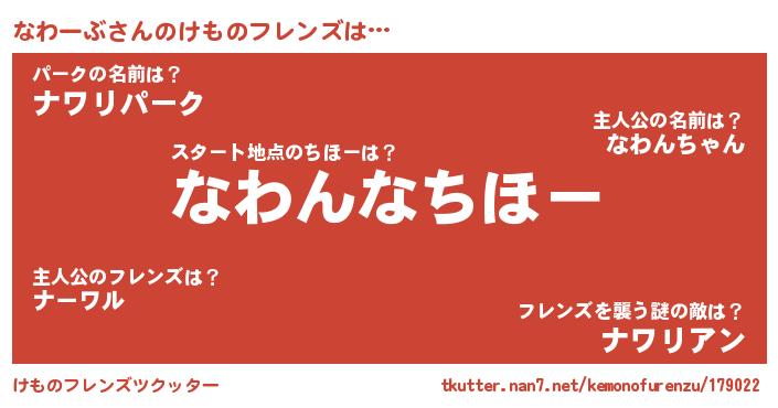 | 2回繰り返すあだ名 | 『ななわわ』『まごまご』『ぷにぷに』 |
